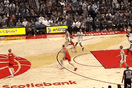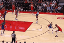 NBA常规赛,猛龙主场迎战雄鹿的比赛正在进行中。比赛的第三节,英格拉姆顶开特伦特,迎着特纳补防中投打进2+1。